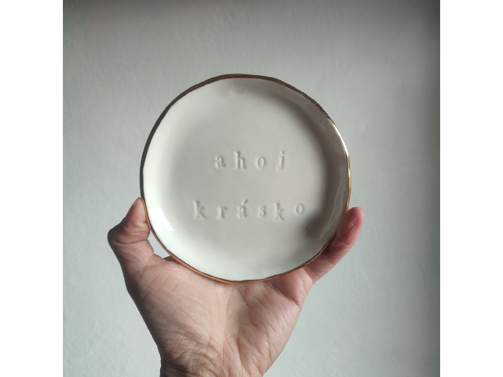 Ahoj krásko v bílé zlacený mini talířek z porcelánu