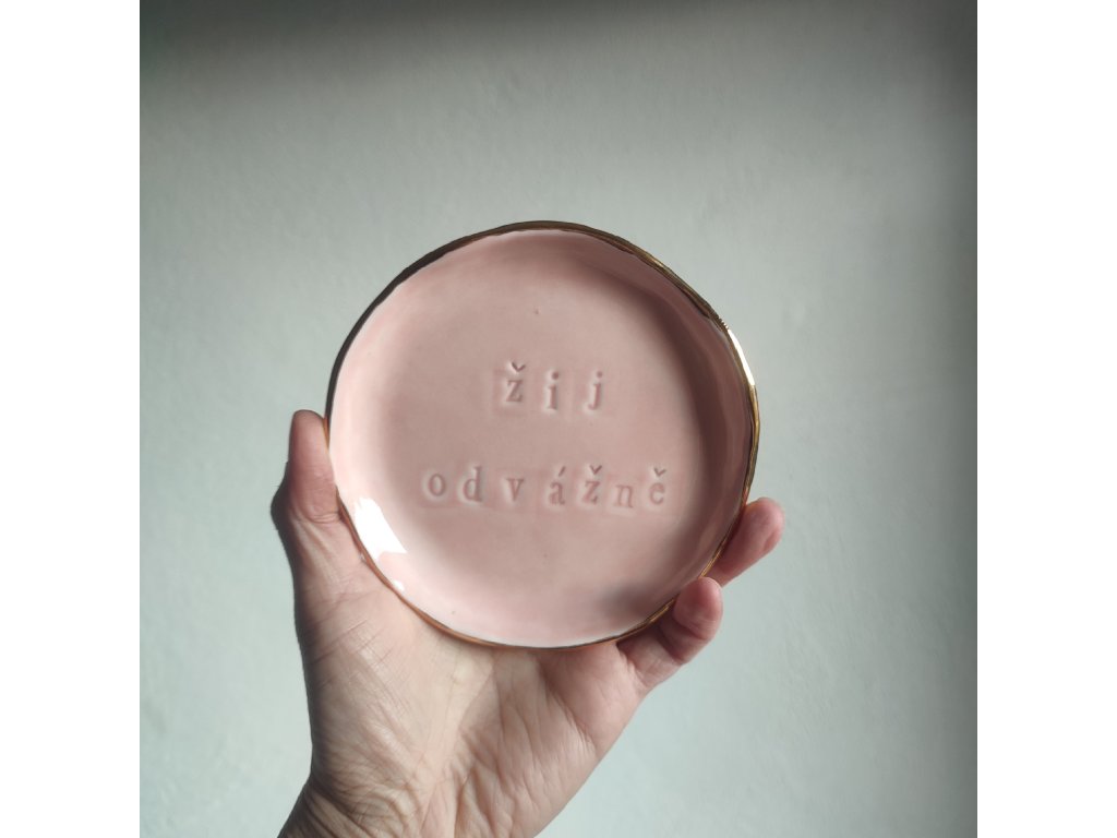Žij odvážně v růžové,.mini talířek nejen na šperky